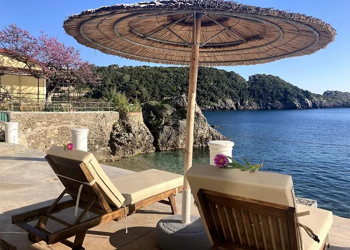 Thomas Beach Studios bietet eine romantische Kulisse am Ionischen Meer, umrahmt von den berühmten grünen Klippen von Paleokastritsa und der Halbinsel Akrotiri. Dieses Refugium ist ideal für Reisende, die sich nach einem entspannten Urlaub sehnen und die atemberaubende Aussicht genießen möchten. Die Nähe zu einer kleinen, idyllischen Bucht macht den Aufenthalt besonders einladend.